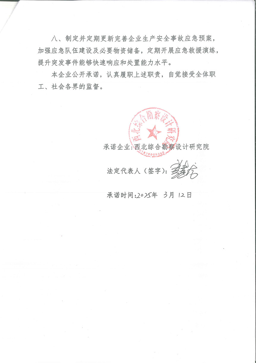 西北综合勘察设计研究院安全生产承诺-鸿泰棋牌