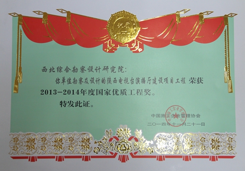 全国工程勘察先进单位、全国工程建设管理先进单位